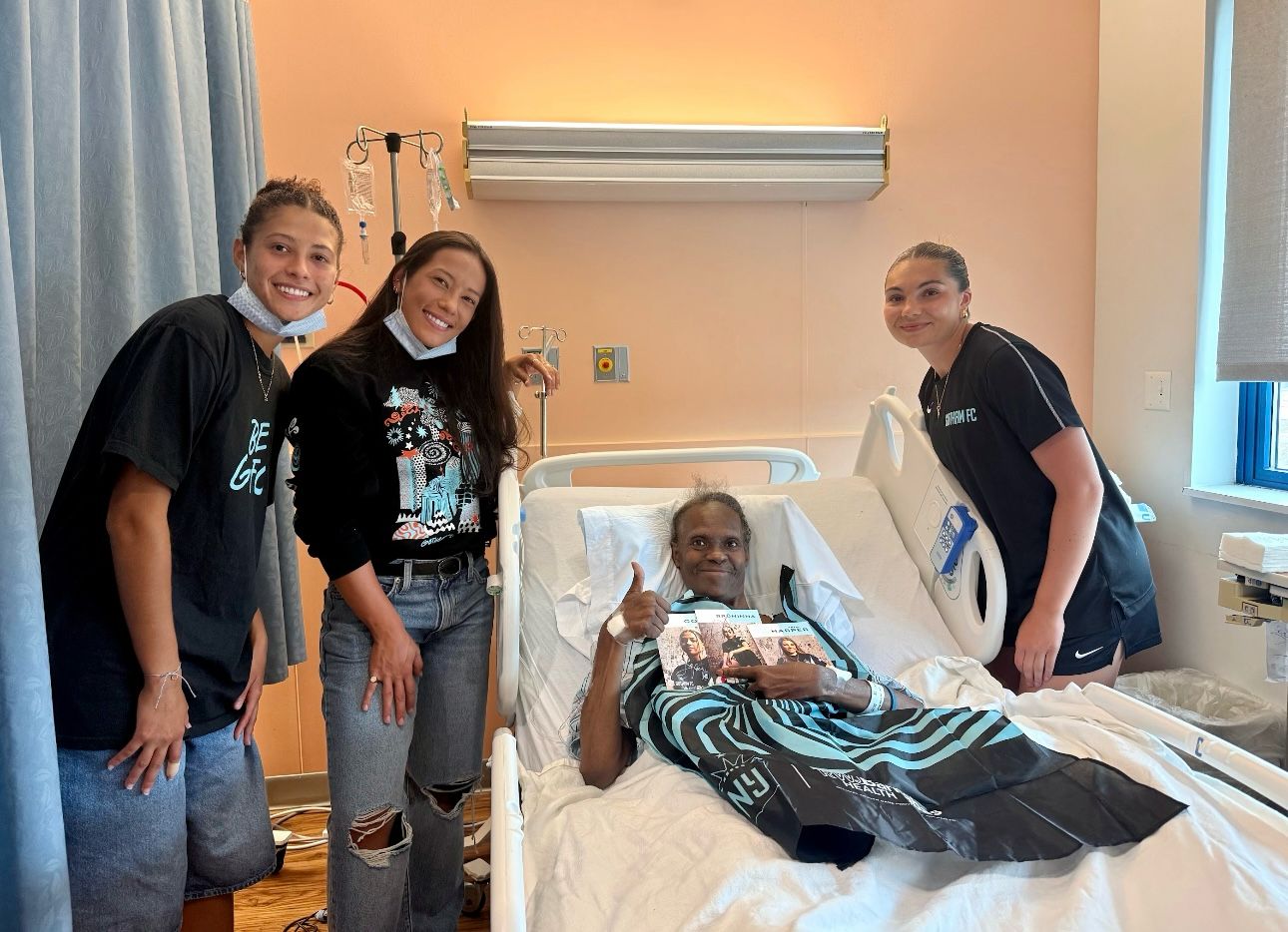 Elizabeth, NJ (Jueves 7 de agosto) – Como parte de su iniciativa continua de alcance comunitario, y en colaboración con RWJBarnabas Health, el equipo de fútbol femenino NJ/NY Gotham FC visitó recientemente el Trinitas Regional Medical Center, una instalación de RWJBarnabas Health, con el propósito de brindar ánimo a pacientes, familiares y personal médico.